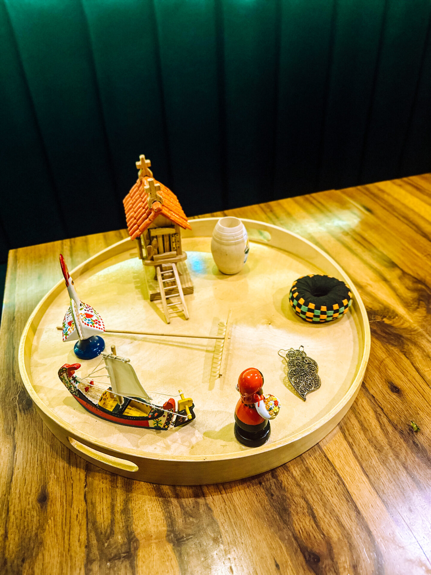 Der Clou: Es ist ein Überraschungs-Menü, anhand verschiedener Spielfiguren – ihr wählt 3 aus, die jeweils für eine Region und Spezialität stehen – bestimmt ihr, welche kulinarische Richtung eure Teller-Journey einnimmt.