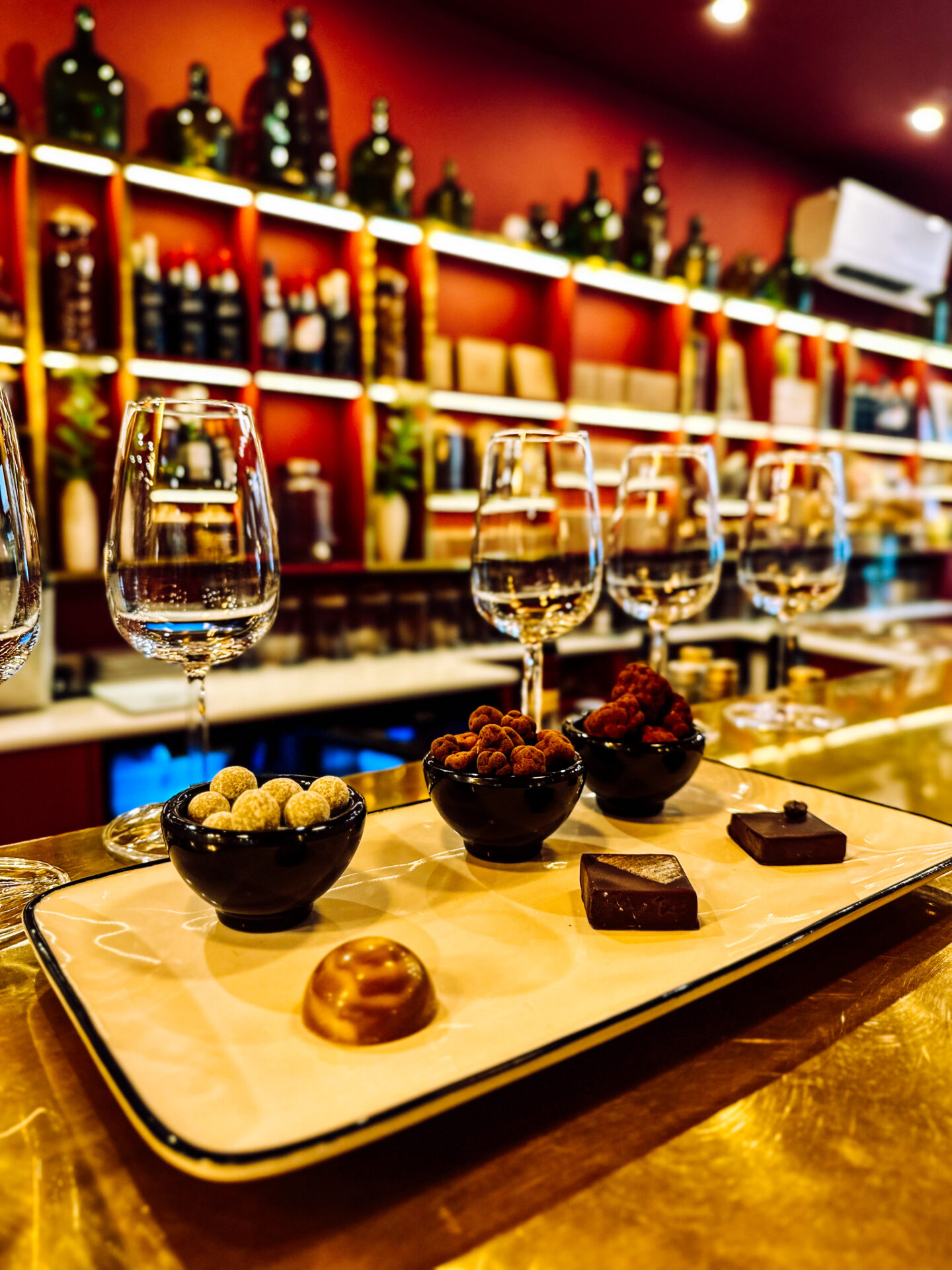 In der Du Bon Chocolate Bar kann man in mehreren „Größen“ Portwein und Pralinen als Pairing verkosten.